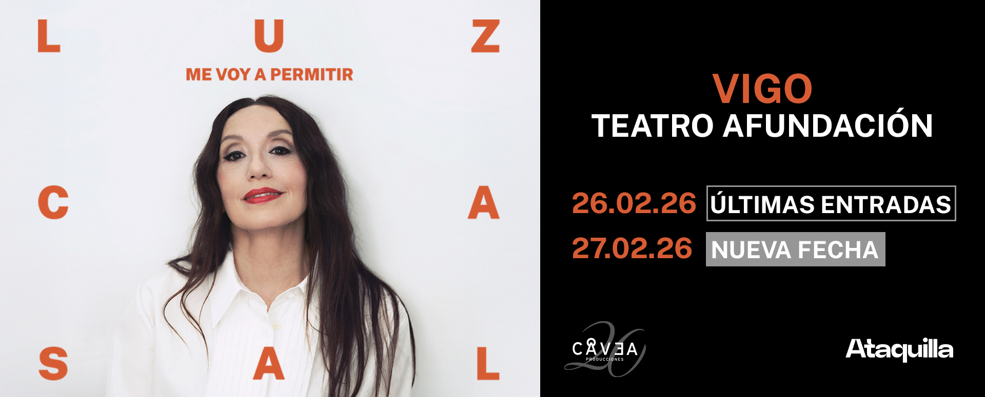 LUZ CASAL ofrecerá este jueves, 26 de febrero y viernes, 27 de febrero sendos conciertos en el Teatro Afundación de Vigo (20.30h) dentro de su gira “Me voy a permitir”